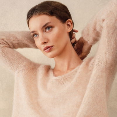 Simply one of our favourite jumpers to wear on repeat this season. It has a slouchy slightly cropped shape that feels instantly cool and it's knitted on a loose tension from a fluffy tactile mohair-and-wool blend creating the most beautiful laid-back light-and-floaty feel. A simple feminine V-neck finished with a slightly raised edge for an elegant finish. Easy to style over trousers or satin skirts.