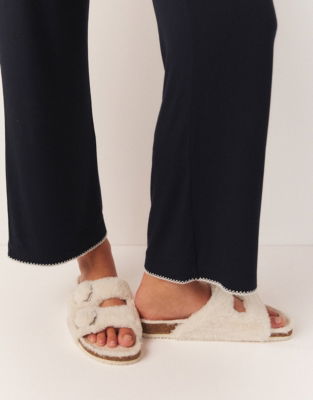 The stylish faux-fur cork sliders are a true hybrid - working just as well with nightwear as loungewear and daywear. Metal buckles on the two straps ensure you can adjust them for the perfect fit and the moulded footbed makes them extra comfortable.