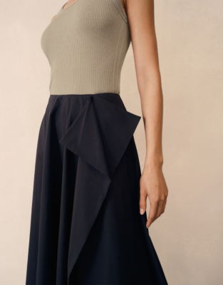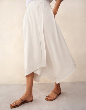 Beautifully full and fluid this wrap-style skirt is made from pure cotton poplin for a crisp contemporary feel with plenty of movement. The dramatic drape detail at the front adds a refined feature while internal buttons create a smooth streamlined fit. Half lined for comfort and designed without pockets to keep the silhouette sleek it's an elegant option that can be dressed up effortlessly.