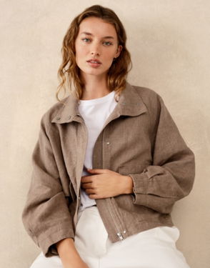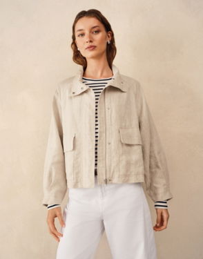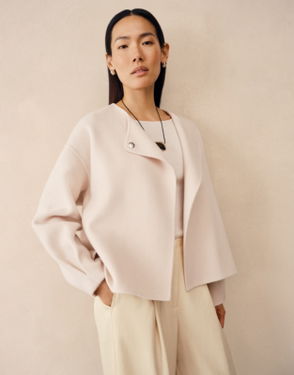 For those in-between-season days a short length wool jacket is a hero item and this has more finesse than most. In cosy pure wool instantly soft the touch and warm while still feeling lightweight it has a tall funnel collar you can wear up or down.