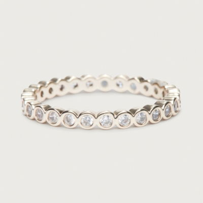 Ideal for adding elegant sparkle to everyday looks this ring is gold plated on a recycled-metal-blend base - great for layering with other gold jewellery. It is set with cubic zirconia stones all around it for a subtle sparkle.