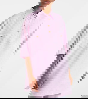 Our oversized T-shirt is a warm-weather wardrobe hero. Made from pure linen the front panel is woven so it has no stretch - just a structured clean and oversized feel. In contrast the back and sleeves are made from jersey linen which does have stretch creating a comfortable and casual feel. The styling is minimal - a patch pocket on the front and small turn-ups on the half-length sleeves plus small side splits. Style and comfort combined.