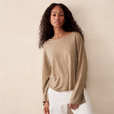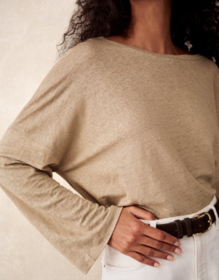Cut for a laid-back feel this oversized long-sleeved tee is one you'll reach for throughout the warmer months. Made from pure linen with a soft jersey finish it feels light and breathable against the skin. We love it styled simply with shorts or linen trousers for day then layered up for cooler evenings - perfect for travel days or holidays as a light extra layer.
