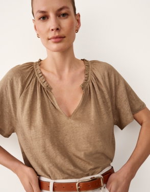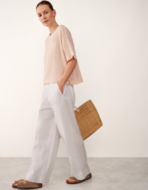 Made with at least 50% linen. Linen is made from the fibres of the flax plant. Flax is resilient and can grow in poor soil, using less water than cotton to produce.'