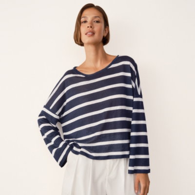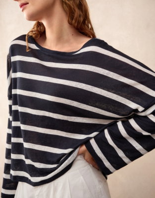 Cut for a laid-back feel this oversized long-sleeves tee is one you'll reach for throughout the warmer months. Made from pure linen with a soft jersey finish it feels light and breathable against the skin.
