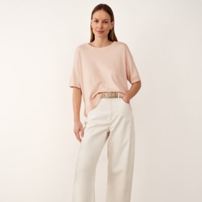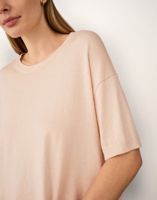 Ideal for everyday outfits this is one of those wardrobe staples that goes with almost everything from dressy skirts to casual weekend jeans. We've kept this style simple with just a few extra touches to elevate the look - a deep fine rib on the hem and a ripple detail around the neck. It comes in a soft cotton blend that is cosy to wear on its own but still lightweight for layering.
