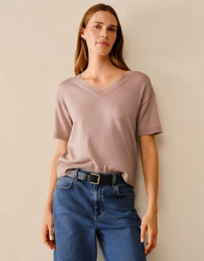 Ideal for everyday outfits this is one of those wardrobe staples that goes with almost everything from dressy skirts to casual weekend jeans. We've kept this style simple with just a few extra touches to elevate the look - a deep fine rib on the hem and a ripple detail around the neck. It comes in a soft cotton blend that is cosy to wear on its own but still lightweight for layering.