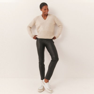 Made from LWG-certified sheepskin leather for an exceptionally soft feel this pair is one of our favourites. The waistband is fixed with a flat front for a clean finish and the stitch detailing just below the knee adds interest.