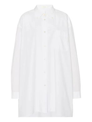 A core piece for a spring/summer wardrobe. Evocative of men's shirt styling with a box pleat on the back and a stepped hem that makes it easy to style untucked tucked in or somewhere between the two.
