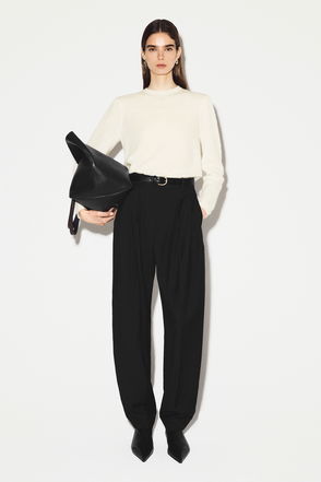 This is an easy style with a cool oversized silhouette. Light and great for layering it's knitted on the horizontal enabling the batwing sleeves to be knitted as part of the main body with the horizontal stripes running straight into them. This is what creates the beautiful drape - so flattering and contemporary. The Milano-stitch hem and rolled edge on the neckline and cuffs add to the cool modern feel.