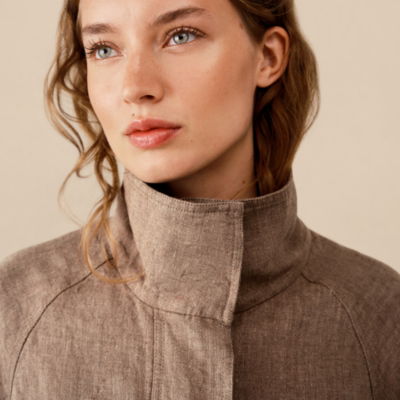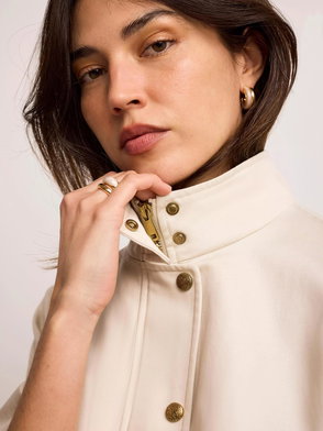 This jacket is already a bestseller so this season we've just updated it a little to keep it modern functional and as flattering as possible. It has an oversized feel on top but with a pleat detail for shape so the overall effect is relaxed. This contemporary design is minimalist and clean with a high collar and new fully concealed magnetic popper fastenings plus big square pockets on the front.