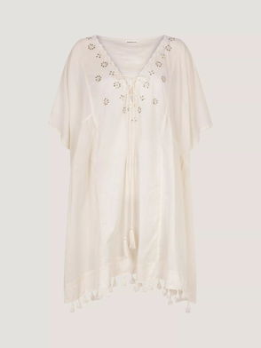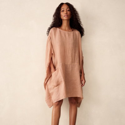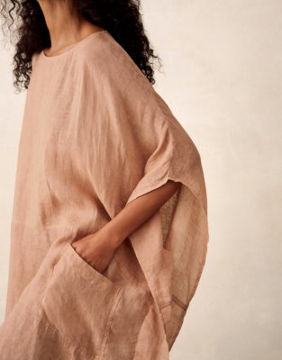 An easy popover kaftan in our light linen gauze that becomes softer with each wear. Horizontal seams and dropped shoulders emphasise the relaxed and floaty shape. The side seams are lightly shaped closer to the waist making it even more floaty - an ideal choice to wear over swimwear for a walk from hotel to pool.