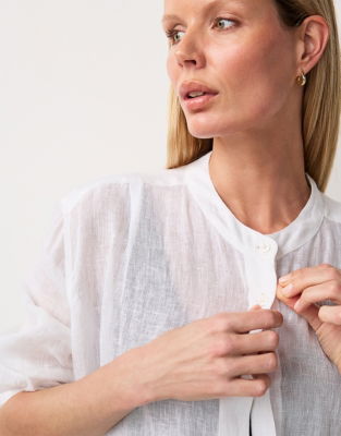 They've given this shirt a contemporary feel with a sleek mandarin collar and deep button-up cuffs. Ideal to wear over swimwear or with shorts to go for lunch at the beach bar.