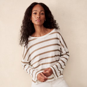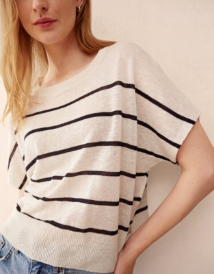 We're such huge fans of this extended shoulder shape knitted T-shirt - it's relaxed instantly flattering and effortlessly versatile. We've added a clean Milano-stitching on the armholes for a considered finish along with deep rib trims at the neckline and hem. The linen-rich yarn feels light and breathable perfect for casual days. Finished with small side splits for ease and movement.