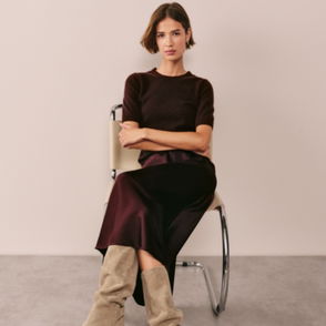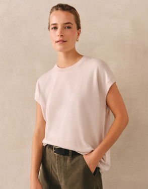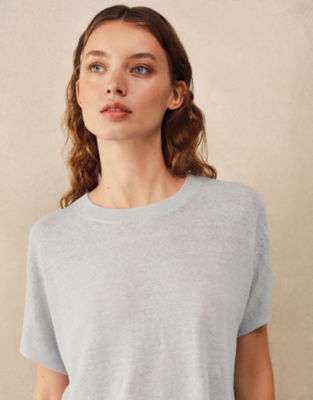 One of our most popular shapes updated for a contemporary feel with a more cropped hemline. This is a truly versatile piece with extended shoulders that create a flattering and feminine T-shirt silhouette and it comes in our light-and-floaty linen-rich blend. With a simple crew neckline and ribbed trims plus flattering side splits in the hem to keep styling easy.