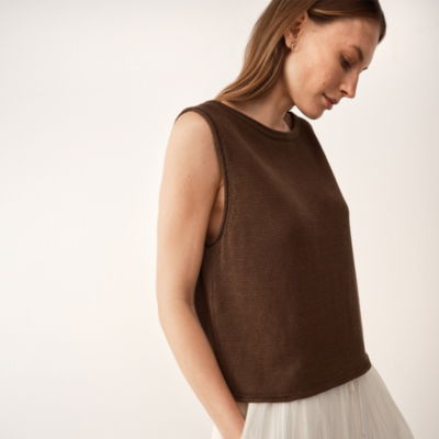 Slightly cropped to sit comfortably on the waistband their sleeveless pure linen tank feels contemporary and sleek.