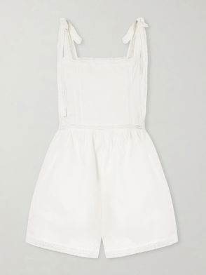 We have reimagined our signature short dungarees in a more contemporary silhouette - with a nice wide leg in a relaxed shape for ease of movement on warm days. A flattering scoop neckline which extends slightly lower on the back creates a comfortable-yet-stylish shape with narrow straps for easy wear. Practical details include side-seam pockets and patch pockets on the back. Easy to slip into after a beach day or style for everyday by layering with a favourite t-shirt for a more casual look.