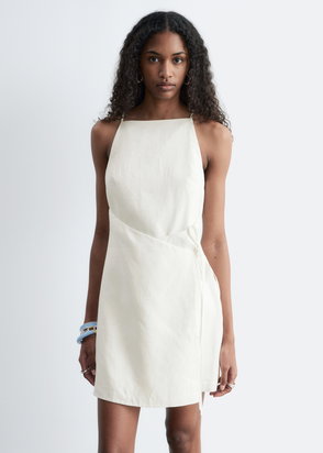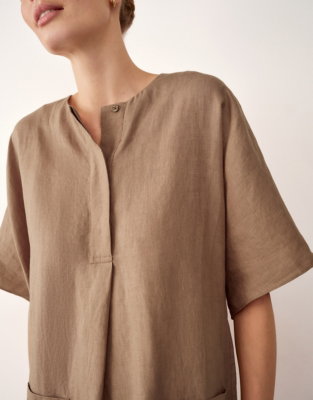 An easy shift dress made with a premium weighty linen for fuller coverage that's still airy-light and soft in warm weather. Practical details like patch pockets and a concealed placket with dyed-to-match buttons give the dress a clean look. It has grown-on sleeves and gathers on the back-yoke seam to add shape making it ideal for everyday wear or as a beach cover up.