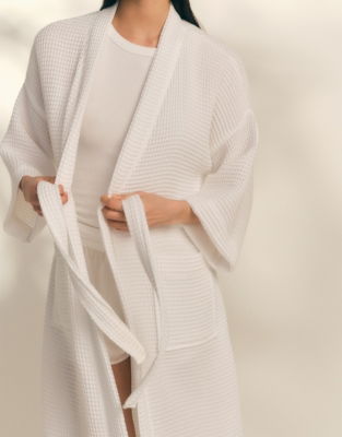 Our bestselling lightweight waffle robe has been reinvented for Spring and Summer. Made with single-faced waffle cotton for a lighter feel this dressing gown-style robe has wide and slightly cropped sleeves.