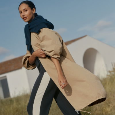 Designed with a beautifully fluid shape this longline coat brings ease and movement to cooler days. The cotton-rich fabric has a soft brushed feel while delicate gathers at the neckline and back create a gentle volume and drape.