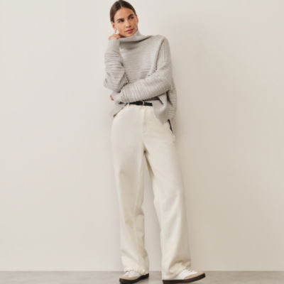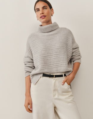 Featuring our gorgeous 'links' textured stitch that has a really luxurious feel this pure-cashmere roll neck is a great way to update your knitwear offering to make it feel a little more luxury. It has a stepped hem and is great for layering with dresses or paired with high-waisted jeans - a hard worker for your winter wardrobe.