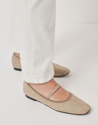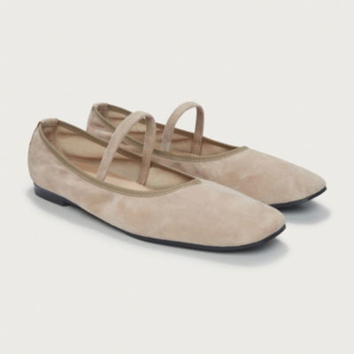 A tribute to the classic Mary Jane style these ballerinas are playful yet polished. In ultra-soft LWG-certified suede they have a subtly luxurious feel with flat soles for all-day comfort. With a thin strap across the front they come in classic black so they go with anything - truly versatile. Wear with jeans tailored pants or flowy midis.