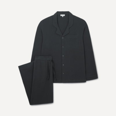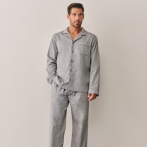 In a soft and textured double cotton our men's pyjamas come in a classic style with big cuffs. The pyjama shirt has our signature mother-of-pearl buttons and a patch pocket on the chest. The matching bottoms have side-seam pockets and are fastened with a herringbone tie. The breathable nature of the fabric makes these ideal for taking us through the changing seasons all the way through to summer. So light it almost floats double cotton is created using two beautifully fine layers to create a relaxed texture as if it's been woven with pockets of air. Due to the double-faced nature of this fabric it will become more textured with washing. We love this rumpled relaxed look and the fabric will stretch back ino shape with wear.