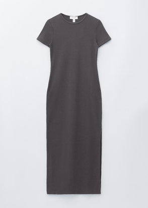 The long dress is simple and elegant while the jumper has an all-over rib for contrast and a contemporary knot at the hip to create asymmetric shape.