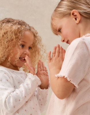 These charming girls' sleepwear come as a set of two styles. One has a floral print with heart pointelle base and picot trim neckline while the pink pair features an all-over heart pointelle pattern with a frill neckline. The super-soft organic cotton is gentle on your little one's skin perfect for cosy sleep and weekend mornings.