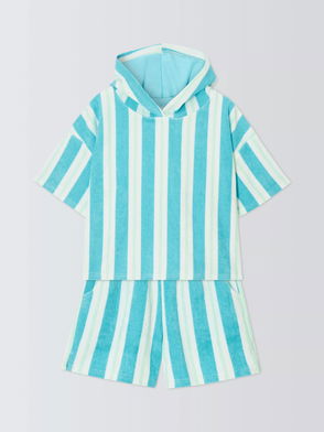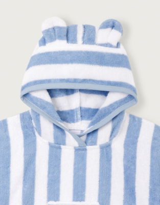 Our pure-organic-cotton-towelling poncho is the ideal accessory for a day at the beach or around the pool. Covered in blue and white stripes it has a classic nautical feel with a practical kangaroo-style pocket for keeping hands warm and storing special shells. The cosy hood is complete with 3D ears for a fun extra touch. Throw on little ones so they can dry off while covering up and before they're ready to jump in the water again.