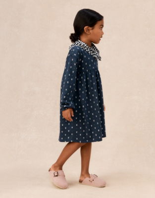 This super-soft crinkle jersey dress set is a sweet choice for everyday adventures. Featuring a navy base with a daisy-and-dot print the dress has gathers for movement.