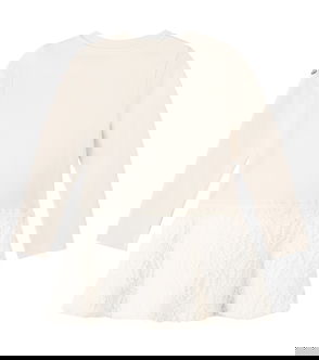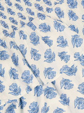 The dress is adorned with tiny flower embroidery all over both front and back adding a delicate premium feel. We especially love the pretty frill hem detailing along the arms and neckline giving it an extra-special finish. The full skirt is ideal for twirling around in while mock mother-of-pearl buttons at the back make for easy dressing.