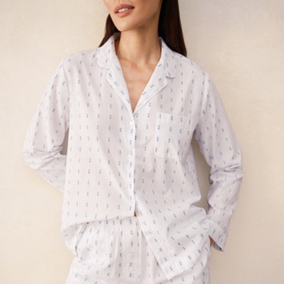 Soft organic cotton; ditsy jacquard pattern; classic woven design - a PJ style ideal for taking us through the changing seasons all the way through to summer. They have all the premium touches you'd expect - mother-of-pearl buttons piping details and a neat breast pocket. The trousers are finished with an elasticated waist and faux fly with mother-of-pearl buttons. Love this pattern? It also comes as a robe and nightie.