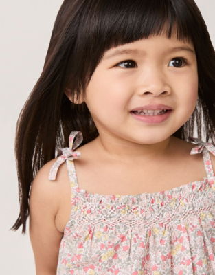 A two-piece outfit that's pretty and practical - great for sunny outings and picnic days - made in pure organic top and covered all-over in their sweet Manon floral print.