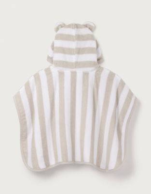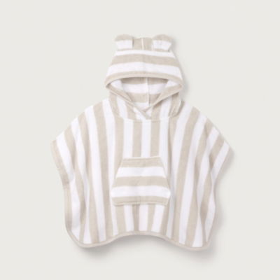 Our pure-organic-cotton-towelling poncho is the ideal accessory for a day at the beach or around the pool. Covered in thick stripes in a neutral shade it has a classic beachside look with a practical front pocket they can warm their hands in shaped like a heart for a sweet touch. We especially love the 3D bear ears on the hood. Simply wrap little ones up in it so they can dry off and keep cosy before they're ready to jump in the water again.