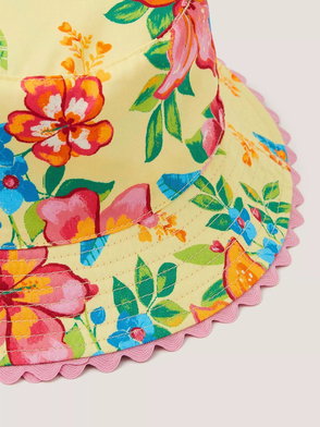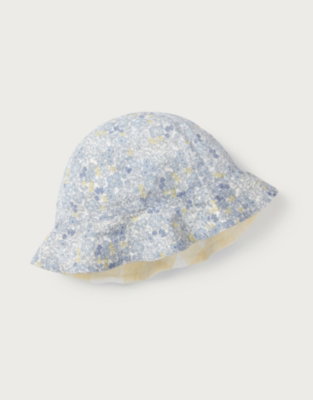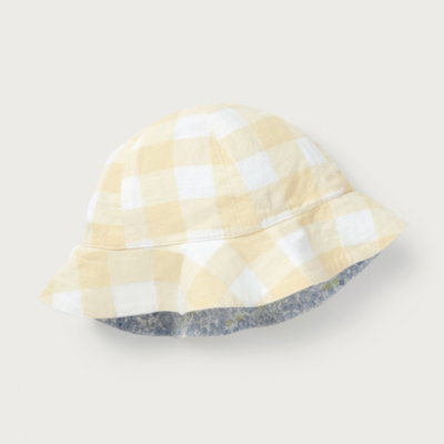 A versatile accessory for little ones this reversible hat offers two adorable looks in one. The outer fabric is made from pure organic cotton that's gentle on delicate skin with a beautiful petunia floral print on one side that can be flipped to reveal cheerful pale yellow gingham pattern on the other. Perfect for keeping little heads protected on sunny days or adding the finishing touch to their outfit. The soft breathable fabric makes it comfortable for all-day wear whether they're exploring the garden or heading out for a family day trip.