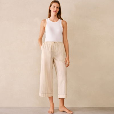The White Company’s relaxed poplin-fabric pyjama trousers are lightweight and airy and have matching shorts and a shirt available so you can mix and match to create a set you love or change it up with the seasons. They come in a modern slightly cropped design with narrow drawstring waist with rouleau ties. The modern contrast stripes in neutral ecru have a subtly elevated feel.