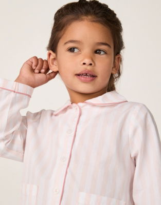 Inspired by traditional bedtime styles our relaxed-fit pyjama set gets little ones looking put together and ready for sleep. It's covered in pink and white stripes and has a smart-looking revere collared neckline. Detailed with piped trimming and two patch pockets this is a really grown-up-feeling set for when little ones want to feel extra special. We've also got matching women's pyjamas available for coordinating style.