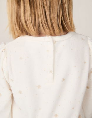 For a hint of sparkle during bedtimes we've added shimmering snowflakes all over this top-and-bottoms set. With long puff sleeves it's made from an organic-cotton-rich velour that's velvety-soft and super cosy to ensure lasting comfort once their head hits the pillow.