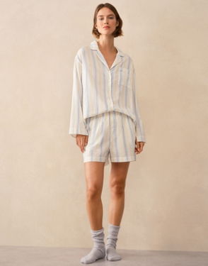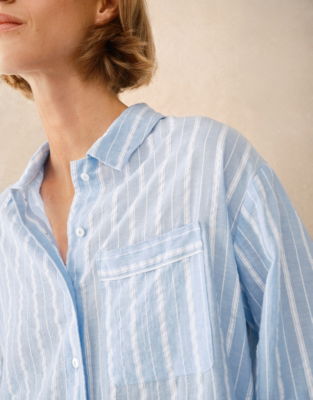 It's the fabric that makes this style such a great choice for the season - pure cotton with a lovely relaxed seersucker texture and classic stripes. Soft lightweight and comfy - ideal for ensuring a cool night's sleep or for lounging on weekend mornings. In a contemporary relaxed shape with thoughtful extra details: breast pocket contrast direction on trims and mother-of-pearl buttons.
