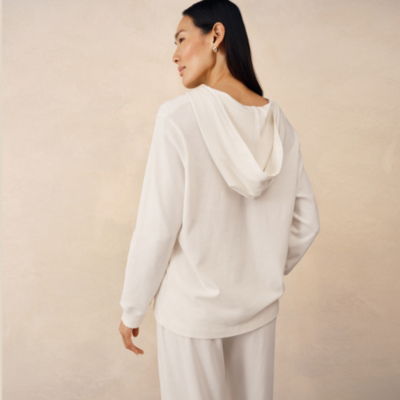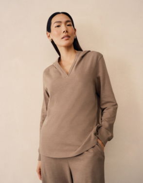 A casual staple - easy to throw on at home or as a lightweight layering top when you're popping out. It's made from organic cotton woven in a slubby lightly textured fabric that feels instantly contemporary. It features a modern ribbed detail down the side for an extra finish. Pair with jeans or with the matching wide-leg trousers to make a set.