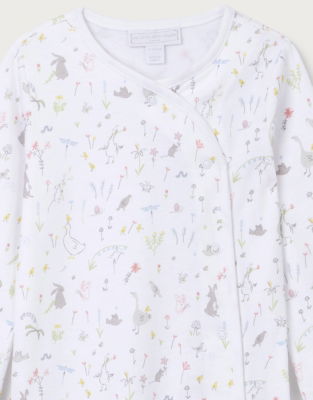 This wrap sleepsuit features a sweet spring scene print perfect for little dreamers. Made from super-soft organic cotton the wrap design makes dressing and changing quick and fuss-free ideal for night moments.