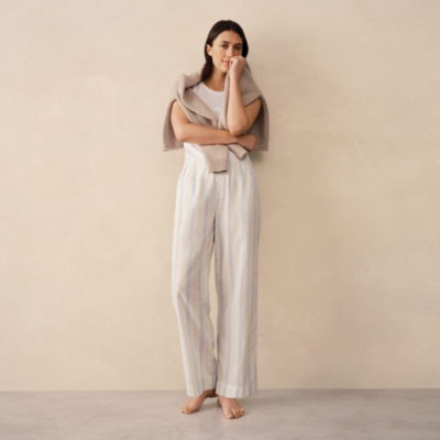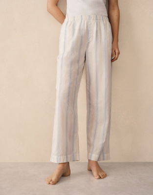 With delicate contrast stripes in pale blue and yellow these trousers are a springtime update on a classic nightwear style. In a relaxed roomy leg with an elasticated waist and rouleaux ties. Pair it with the matching shirt or swap for the shorts depending on the season and how warm you like to sleep to create a great mix-and-match set.