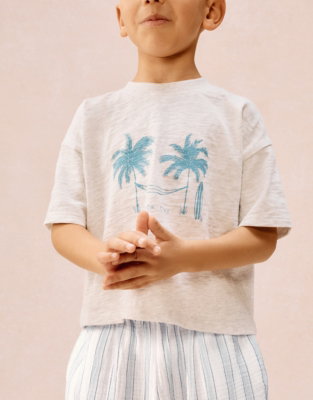 Perfect for lounging and dreaming of sunny beach days these pyjamas feature a pale grey marl boxy T-shirt with a fun 'Siesta Time' slogan complete with palm tree and surf print.