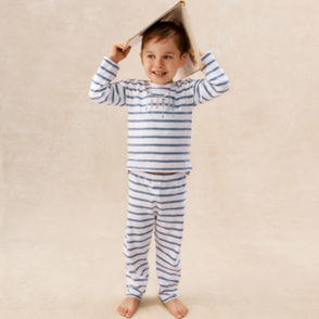 These shortie pyjamas bring a fresh summer feel with their beautiful watercolour stripes in two tones of blue against a crisp white base. Made for warmer nights this comfortable nightwear features a classic revere collar top with short sleeves and a handy pocket detail on the front.