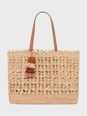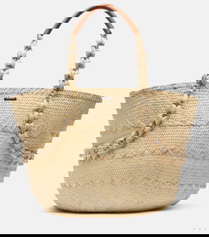 Our bag is hand-woven from natural raffia and is the perfect accessory for sunny days out. It has thick sturdy straps for carrying and handy internal card pockets. The oversized shape makes this bag quite roomy so feel free to load it up with all your warm-weather essentials from towels and sunscreen to beach hats.