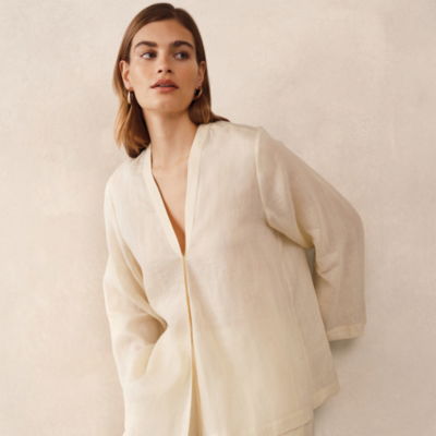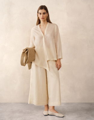 This is an easy relaxed piece with an asymmetric hem which draws attention to the beautiful drape of the shirt. Complete the look with the ramie ankle-grazer trousers.