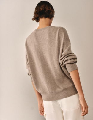 We love a classic crew-neck shape and this is a more relaxed and contemporary version of it with flattering drop shoulders and a curved hem that's easy to tuck in for versatile styling. This is part of the core cashmere range created with a fine yarn knitted on a higher gauge to create a really luxurious snuggly-soft feel.