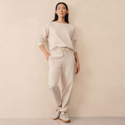 A fresh take on classic joggers - effortlessly blending comfort and style. An easy slightly tapered shape dropping to wide ribbed cuffs at the ankles. The wide waistband is ribbed too and finished with ties. Perfect with the matching sweatshirt for an easy coordinated look.
