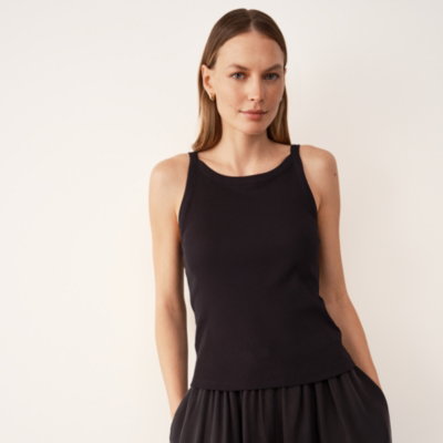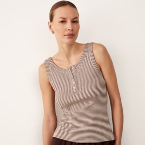 Our pure cotton vest is a wardrobe staple with a round neck for an added touch of elegance. The jersey fabric has fine all-over ribbing that feels beautifully soft and comfortable. The strap binding ensures a structured fit making it ideal to pair with linen trousers for a casual holiday outfit.